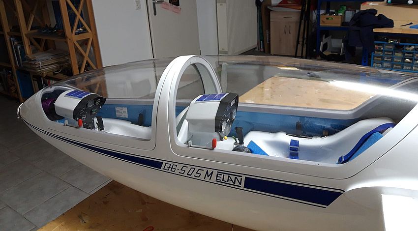 Siegi Hackl's neues Projekt, eine DG505 ELAN mit 6,29 m SW im M 1:3,5 ist im Frühjahr flugfertig - eigenstartfähig mit Nasenantrieb ca. 13 kg: