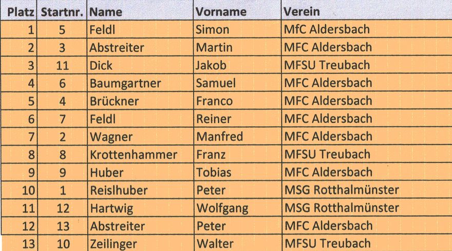 1. Platz und damit dreimal hintereinander gewonnen hat: Simon Feldl mit 949 Punkten.
