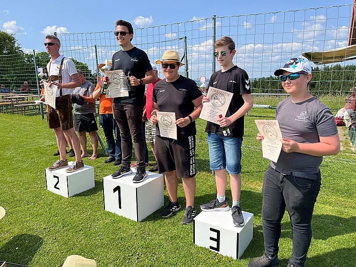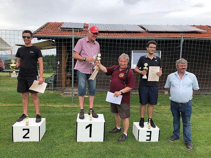 Vorstand Wolfgang Hartwig überreichte den Bestplatzierten die edlen, lasergeschnittenen Holztrophäen und bedankte sich für den angenehmen Wettbewerbsverlauf, ehe er alle Teilnehmenden abschließend für das „Minstra Pfingstfliagn“ im kommenden Jahr einlud.