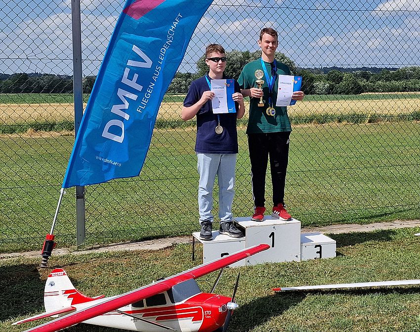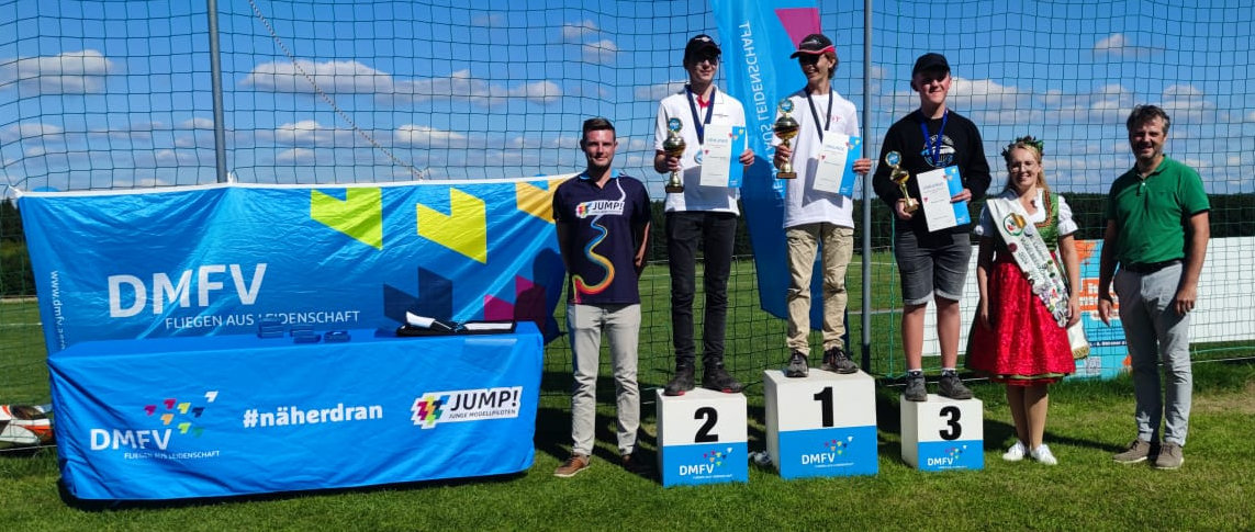 Unser jugendliches Mitglied Florian Kohl nahm erfolgreich an der Deutschen Jugendmeisterschaft des DMFV im Westerzgebirge beim Verein "Modellbau Spiegelwald e.V." teil. Er erreichte in der Motorflug-Expert-Klasse den hervorragenden 3. Platz:
