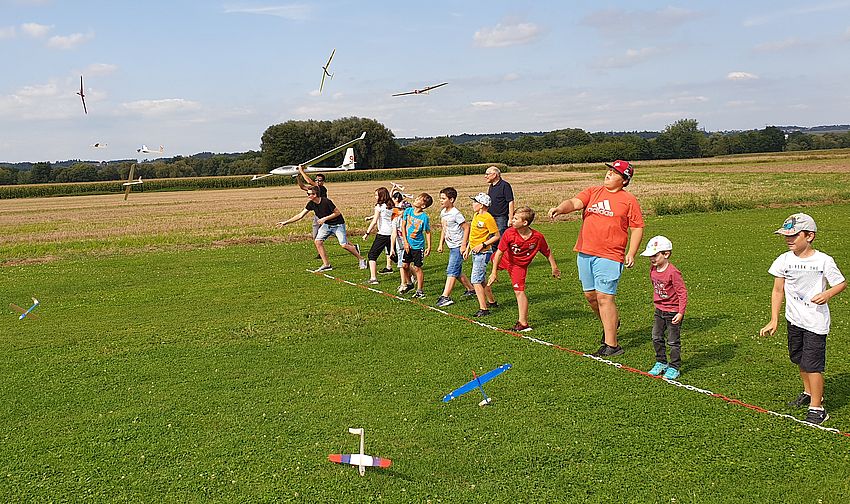 Der Höhepunkt nachmittags war dann der Weitflugwettbewerb mit den Wurfgleitern. Die jungen "Modellpiloten", deren Flieger die weiteste Strecke zurücklegten, wurden mit Preisen bedacht.